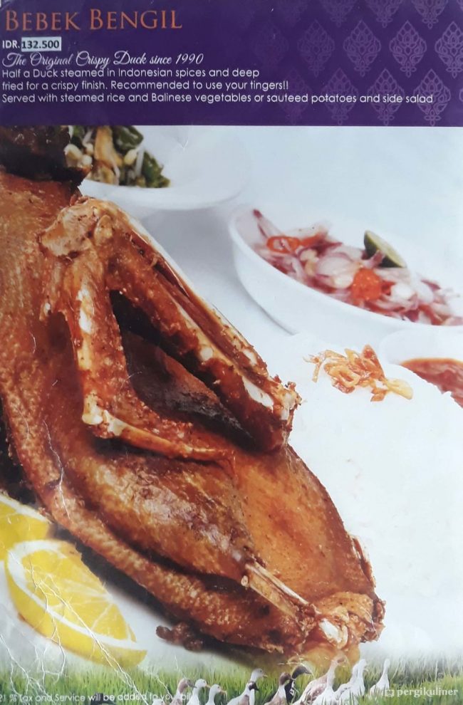 Dimana bebek disini disajikan dengan cita rasa yang sangat gurih. Bebek bengil ini digoreng hingga kulit dan sebagian tulang kecilnya terasa sangat renyah, tetapi daging bebek tetap lembut di dalamnya dan tidak alot.
