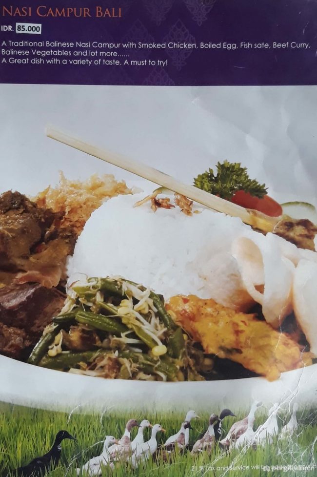 Menu yang dipesan: Nasi Campur Bali, Beef Carbonara, bebek bengil crispy duck, dick fried rice.